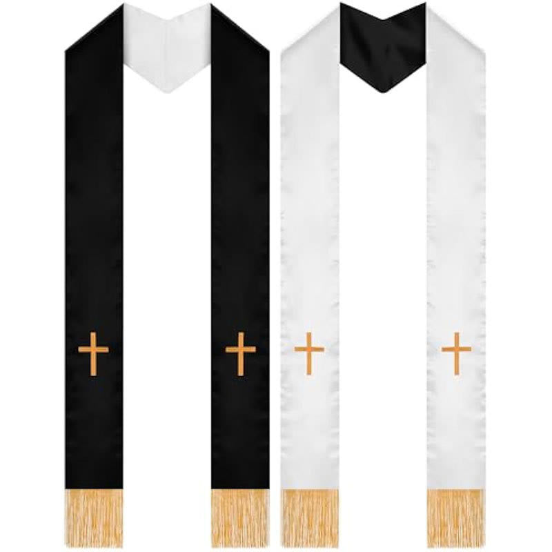 This clergy stole comes in traditional liturgical colors—green, purple, red, black, and white—each reflecting profound aspects of the Christian journey. - Dual Neck Design for Versatile Use