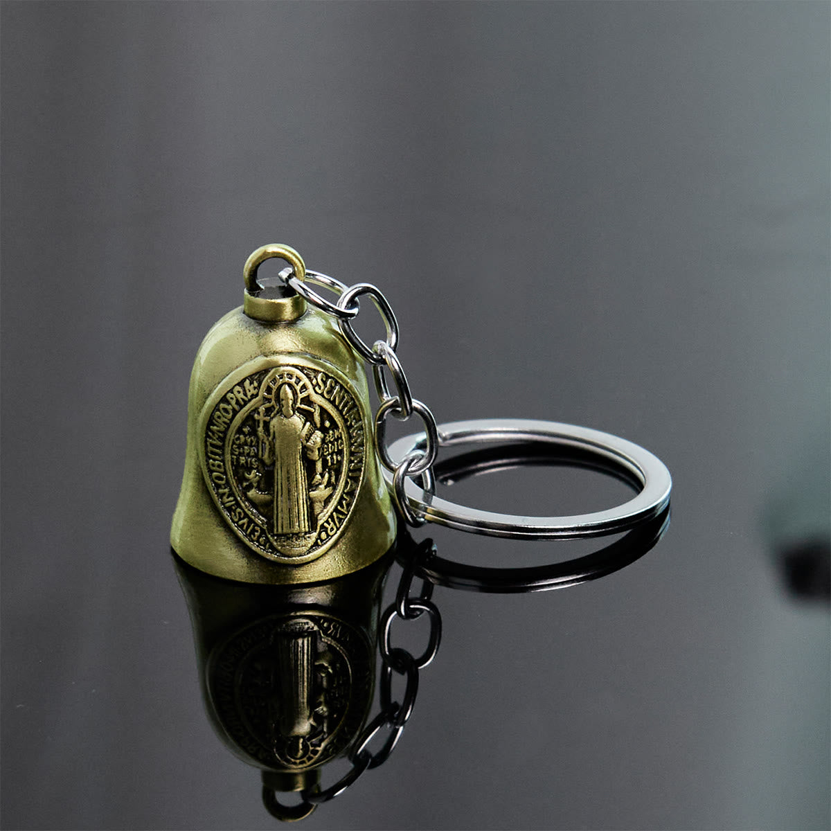 Two Color St. Benedict Guardian Bell Keychain: Faith Shield Key Ring
