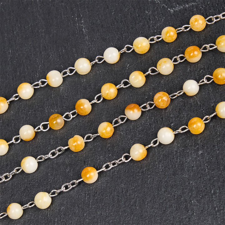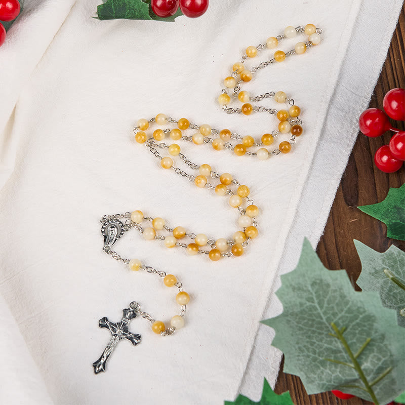 Virgin Mary & Crucifix of 8 mm Round Yellow Agate Alloy Chain Rosary